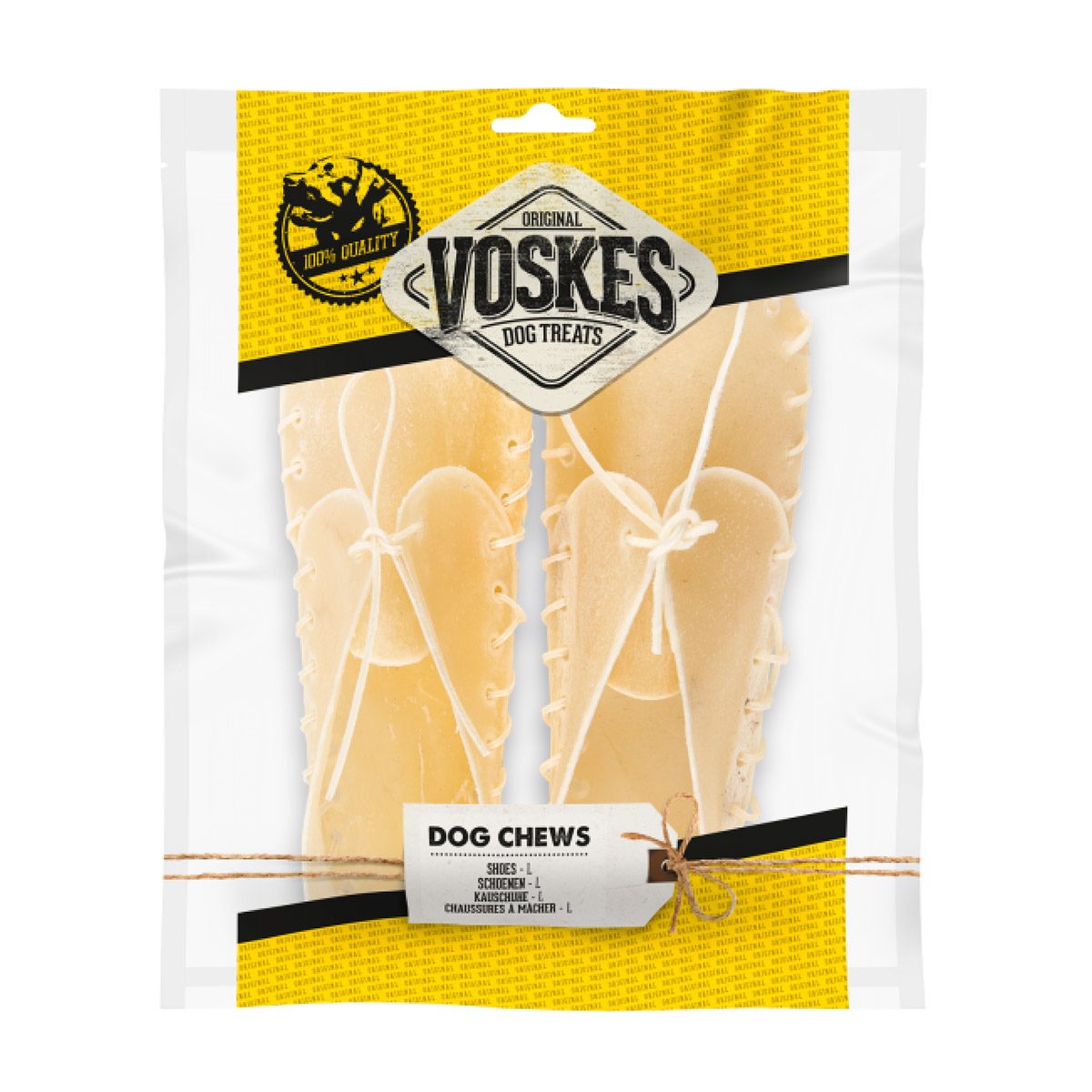 Voskes Schoenen zijn schoenen gemaakt van gedroogde runderhuid. Deze natuurlijke snack is de ideale snack voor de hond die ervan houdt om flink op zijn snack te kauwen. Met deze smakelijke Voskes Schoenen geef je je hond urenlang kauwplezier.