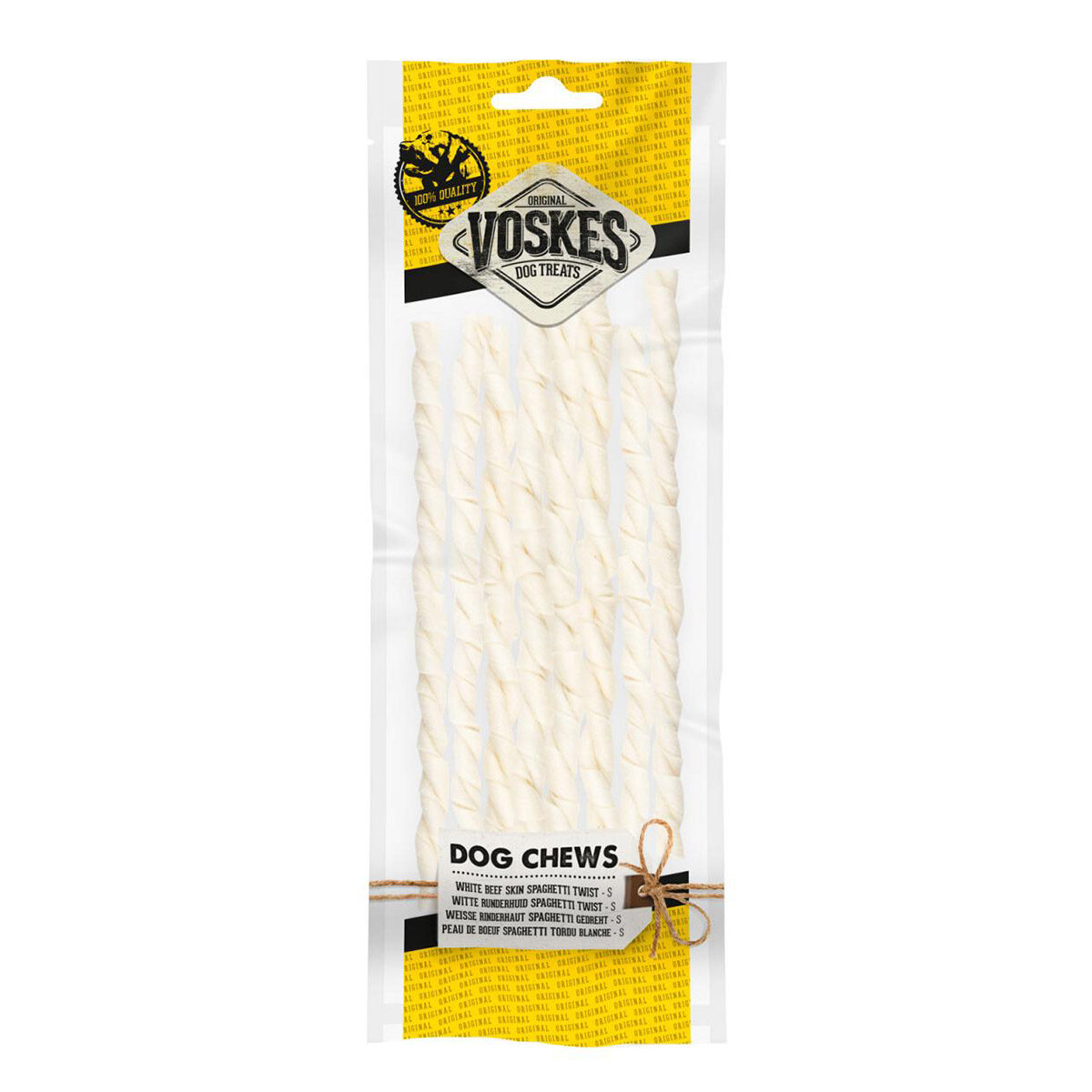 Voskes Spaghetti White 20 cm 8 st is een spaghetti twist gemaakt van blanke runderhuid. Deze snack bestaat voor 100% uit rund en bevat geen toevoegingen. Voskes Spaghetti White is een heelrijke, natuurlijke kauwsnack. De hondensnack is het ideale tussendoortje die het kauwgedrag activeert en op deze manier bijdraagt aan een gezond gebit.