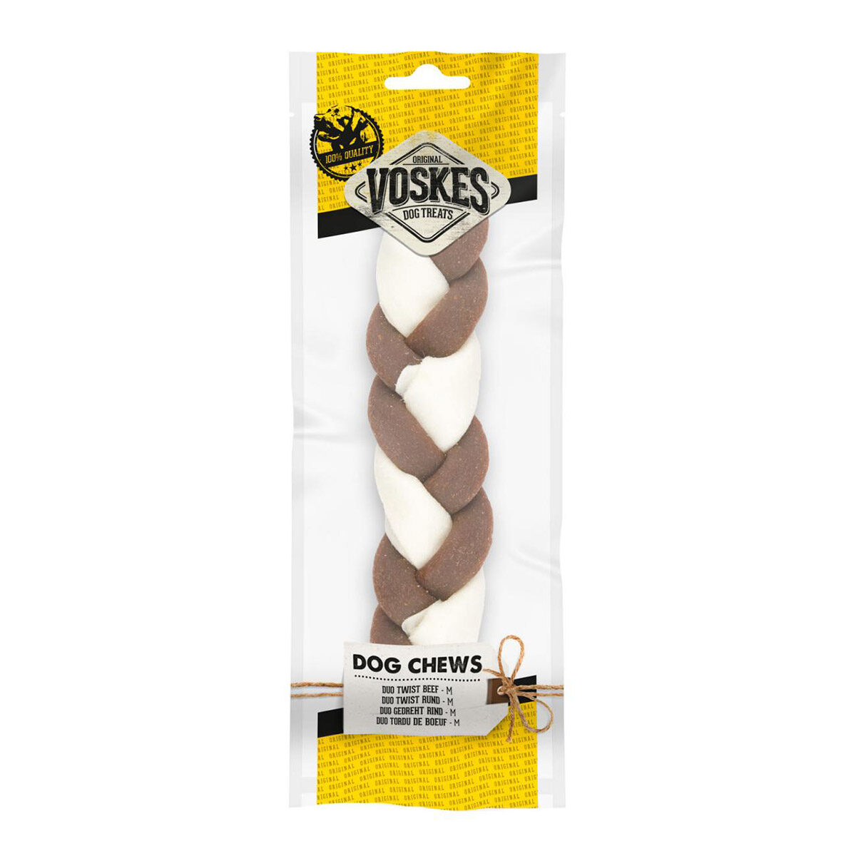 Voskes Twist Duo is een vlecht van blanke runderhuid met een smakelijke strip van rund. Voskes Twist Duo is een kauwsnack om van te smullen en daarnaast draagt de vorm van de snack ook bij aan het schoonhouden van het gebit. Ideaal voor de honden die van kauwplezier houden.
