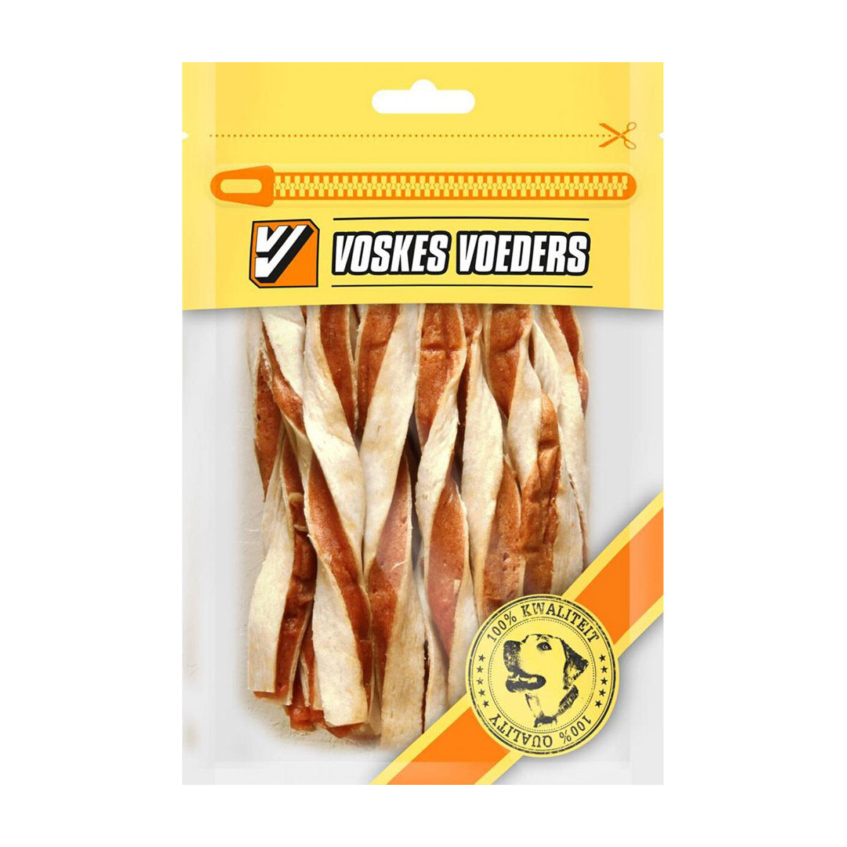 De Voskes Twists Kip & Vis zijn twists met de heerlijke smaken van kip en vis. Deze snack is bereid uit de beste ingrediënten en is het ideale tussendoortje voor de hond die ervan houdt om lekker op een snack te kunnen kauwen. De vorm van deze Kip & Vis Twists van Voskes zorgen ervoor dat je hond zijn gebit reinigt wanneer hij op de snack kauwt. Beschermt tegen tandplak.