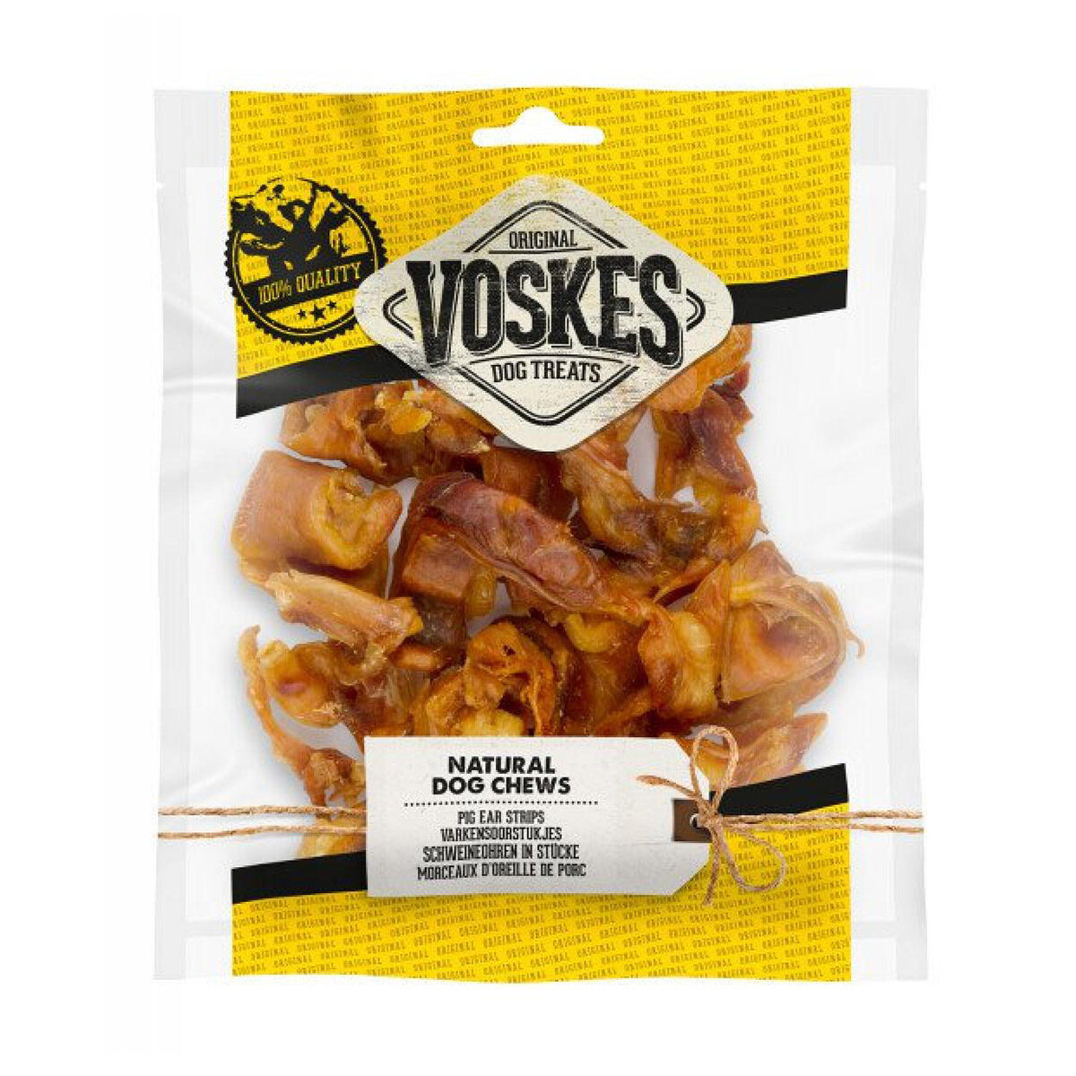 Voskes Varkensoorstukjes 200 gr zijn natuurlijke gedroogde kauwproducten zonder toevoegingen. In deze zakjes zitten kleine stukjes van varkensoren, wat ervoor zorgt dat je hond nóg meer kauwplezier heeft dan tijdens het kauwen op een varkensoor. Het kauwen op de Voskes Varkensoorstukjes draagt bij aan een gezond gebit.