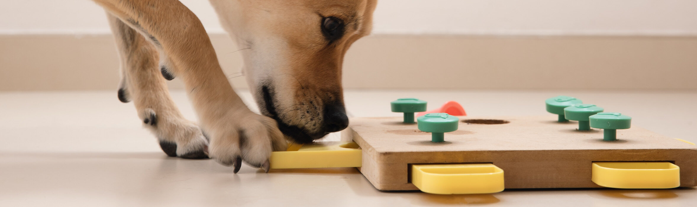 Wist je dat honden die vanwege ouderdom of een operatie niet teveel mogen of kunnen spelen, maar wel energie over hebben, zich extra goed kunnen vermaken met denkspellen? Ook wanneer een hond minder vaak buitenkomt bijvoorbeeld tijdens de loopsheid, verplichte benchrust of wanneer het heel warm is zijn braintrainers een erg leuke oplossing om jouw trouwe maatje bezig te houden.