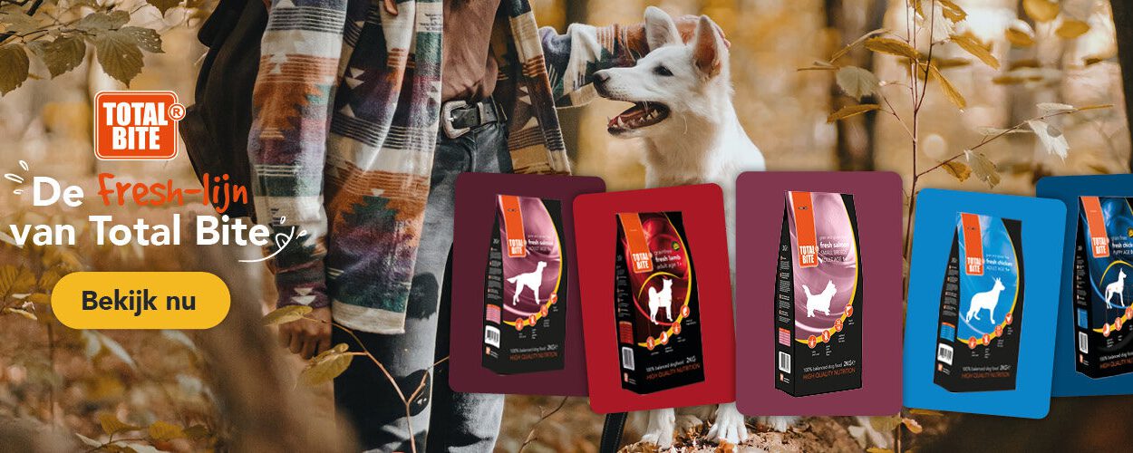 De Fresh-lijn van Total Bite bevat geen tarwe, rijst, maïs of andere granen. Deze granen zijn vervangen door gedroogde groenten en fruit zoals aardappel, wortel, tomaat, banaan en appel. Total Bite Fresh hondenvoer bevat organische sporenelementen. Samen met de eiwitten, mineralen en vetten bieden ze de juiste ondersteuning voor een goede gezondheid. Deze complete samenstelling helpt de kans op allergische reacties en andere vervelende klachten bij je hond te verminderen. De gluten- en graanvrije Total Bite Fresh-lijn is dé gezonde keuze voor jouw hond.
