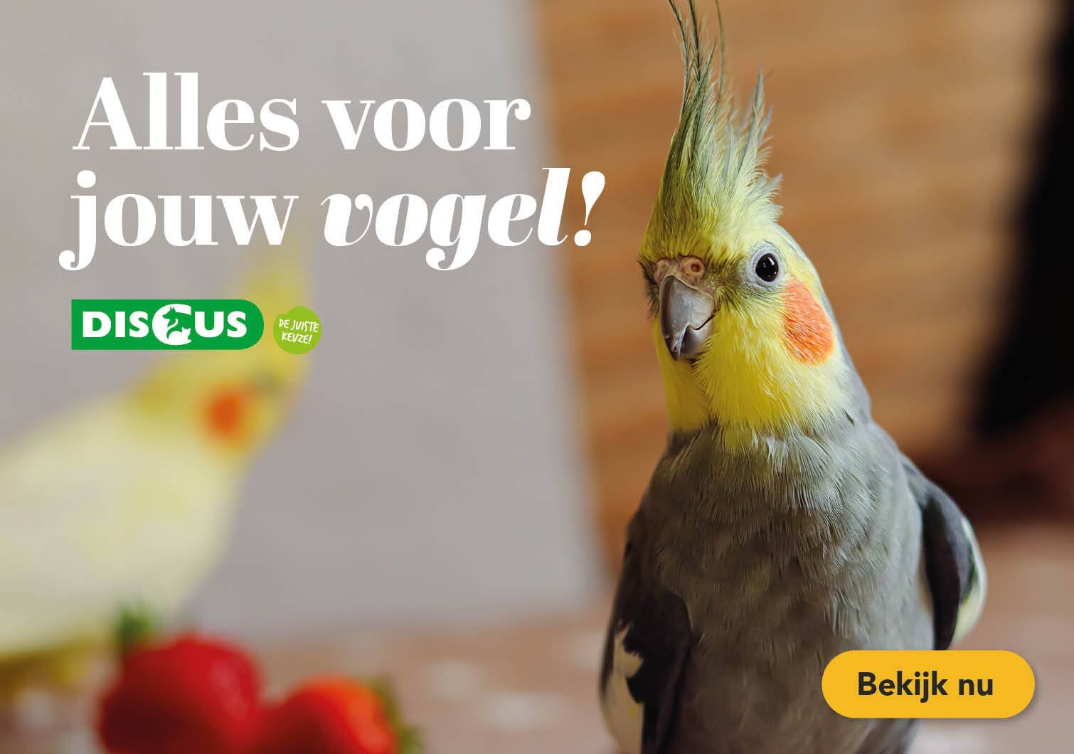 Of je nu een papegaai, parkiet of kaketoe hebt, goede verzorging begint bij de meeste vogels bij het geven van aandacht en gezelschap! Een passende kooi, uitgebalanceerd vogelvoer en speeltjes komen op plek twee. Heeft je vogel meer verzorging nodig? Wij hebben alles voor de gezondheid van je vogel. Kom langs in onze Discus dierenwinkel voor tips & advies of bestel je verzorgingsproducten direct online.